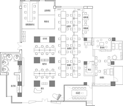 ▄設(shè)計風格定位: 此案例要求簡約、時尚,所以應(yīng)盡量利用簡潔的建筑手法,避免采用過去的造型,繁瑣的細部裝飾,過多過濃的色彩點綴。頂面采用礦棉板吊頂,地面采用米黃色地磚鋪貼,隔斷統(tǒng)一使用透明玻璃加磨砂,所有的隔斷都沒有隔到頂,整個辦公空間顯得更寬敞明亮。我們應(yīng)該創(chuàng)造性的解決客戶的要求,營造一個符合企業(yè)品質(zhì)并且是舒適、健康、富有人性的辦公環(huán)境,使企業(yè)的精神文化在各個角度體現(xiàn)出來。