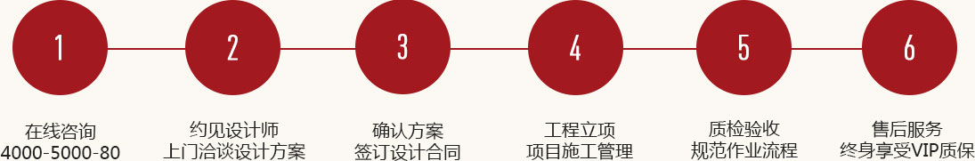 經(jīng)過(guò)年的沉淀,我們將繁雜的裝修流程系統(tǒng)優(yōu)化精簡(jiǎn)至6大步驟,緊密貼合您的需求,為您提供舒適的裝修體驗(yàn)